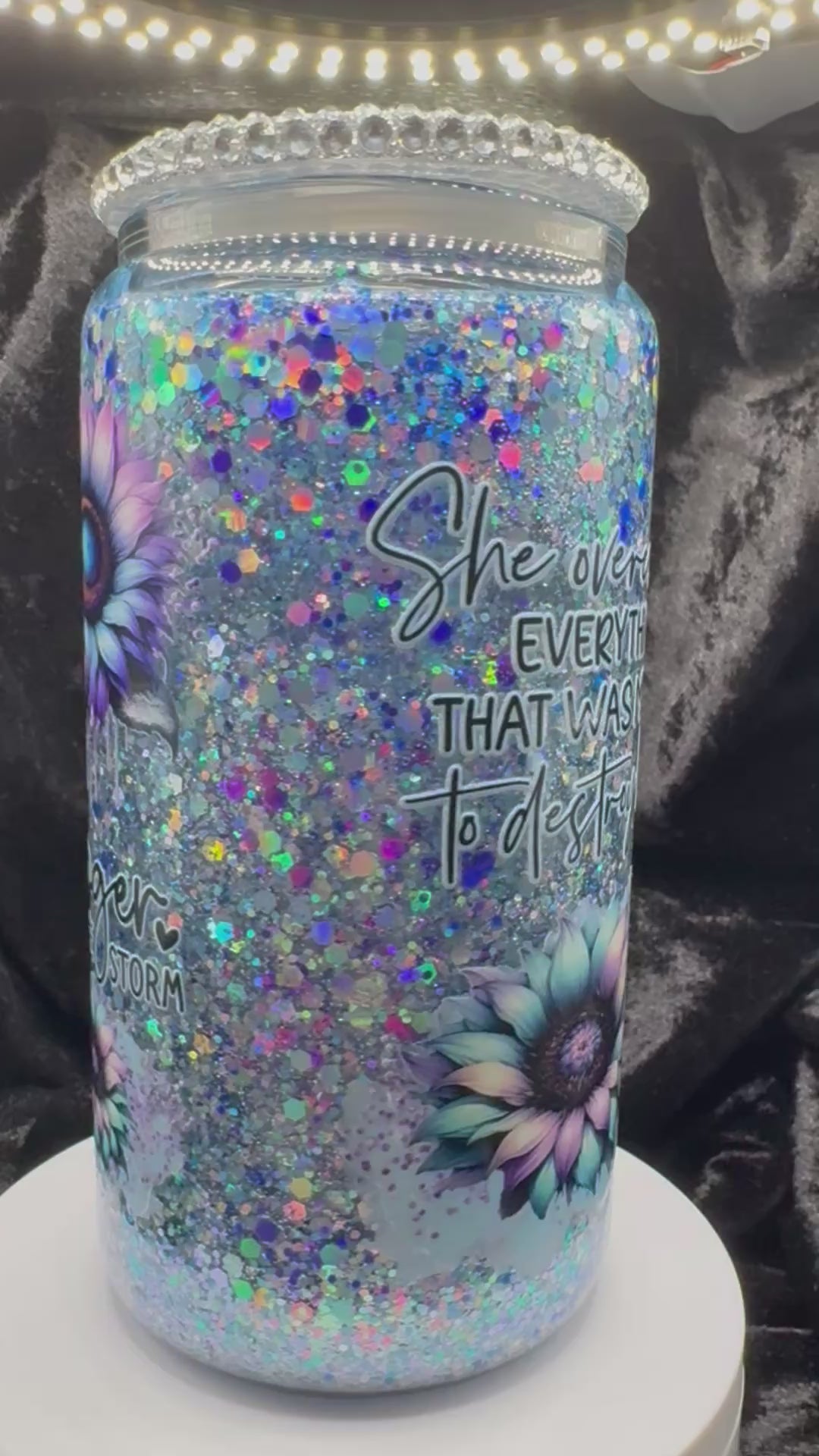 Comes with a straw and silver rhinestone lid.